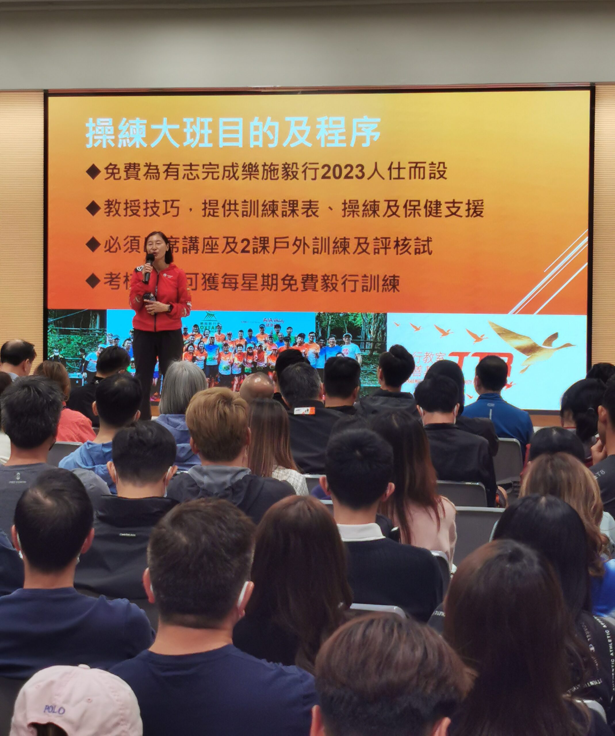 2023年3月7日,本會假深水埔街坊福利會小學舉行「2023年度免費毅行操練大班講座」,吸引超過150名公眾人士出席。當晚活動KK Sir 和一眾毅行教室的師兄師姐也分享以下資訊: 毅行者基本訓練要點、上山下山的基礎技巧、保健護理,處理筋腱繃緊,觀眾反應熱烈。