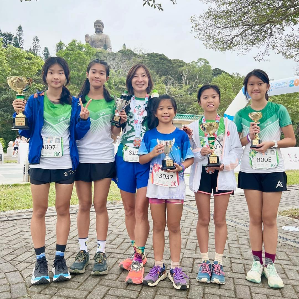 今年,毅行教室慈善基金不只參與義工服務,更派出 U16 青少年隊員挑戰 3 公里、8 公里與 18 公里越野賽道。他們將平日訓練搬上真實賽場,迎風而上、迎階而上,尤其在最後衝上天壇大佛那段長長樓梯時,雖然氣喘如牛、雙腿發軟,但大家帶住「毅力和自信」,一個個笑着衝線完成